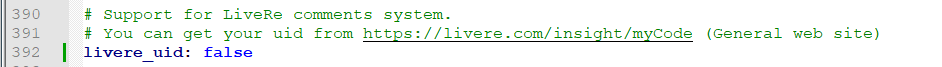 ①打开Next主题的config.yml,找到之前的LiveRE配置文件,livere_uid改为false;
