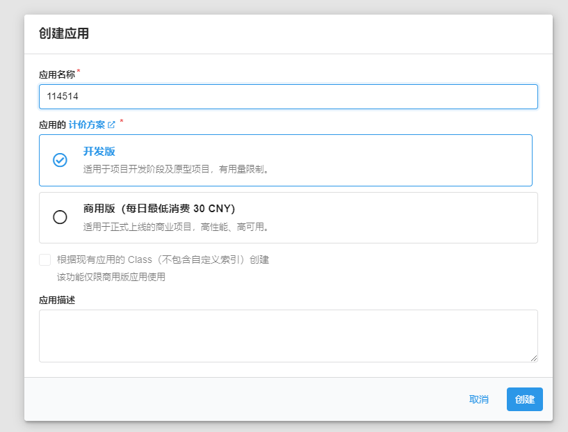 ③完成实名认证后转到应用,创建一个应用,选择”开发版“;