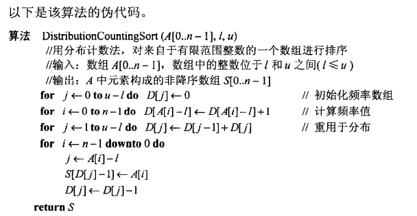 1 | ComparisonCountingSort(A[0..n-1]//用比较计数法对数组排序 |