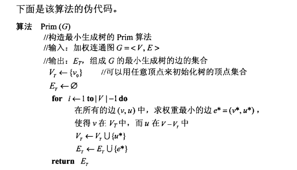它是从点的方面考虑构建一颗MST,大致思想是:设图G顶点集合为U,首先任意选择图G中的一点作为起始点a,将该点加入集合V,再从集合U-V中找到另一点b使得点b到V中任意一点的权值最小,此时将b点也加入集合V;以此类推,现在的集合V={a,b},再从集合U-V中找到另一点c使得点c到V中任意一点的权值最小,此时将c点加入集合V,直至所有顶点全部被加入V,此时就构建出了一棵最小生成树。